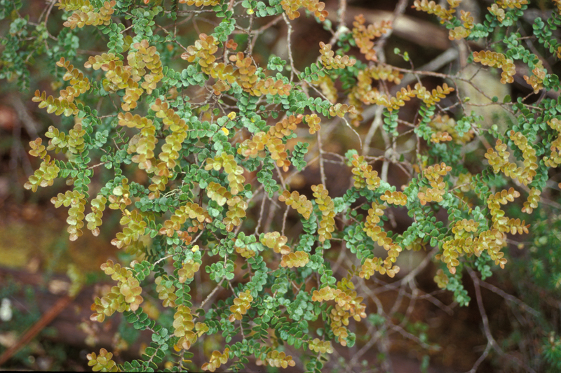 immergrüne Tasmanische Scheinbuche, die auch in Victoria vorkommt, treibt mit gelblicher Färbung aus. Dieser Bewohner des Regenwaldes kann bis zu 50 m hoch werden.